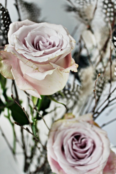 Påsk ris blandas med färska snittblommor. Det blir lite mer liv i det hela då.