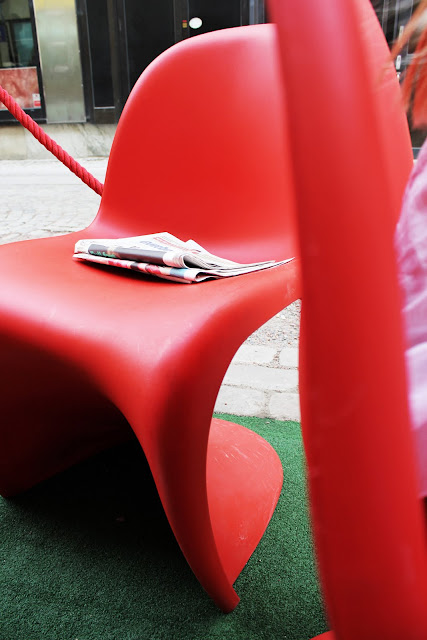 Här kände vi oss som hemma när vi satt på Verner Panton stolar hela högen, hihihi.
