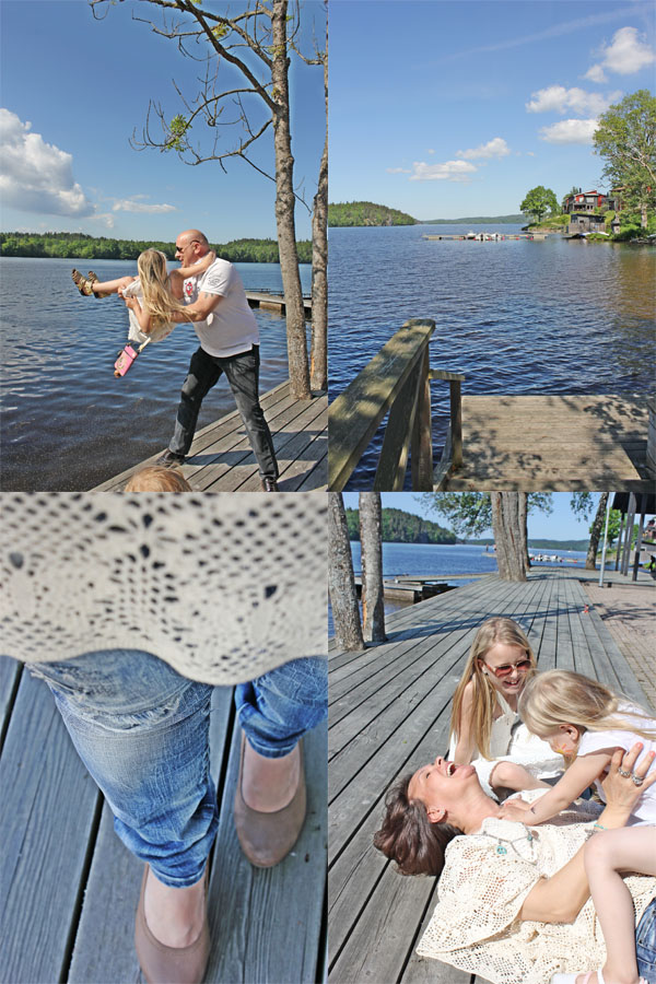 På bryggan nedanför restaurangen ser ni ett vattenkrig som urarta helt. Daddy är på väg att slänga vårt älskade Socker i vattnet och Dockan håller på att killa mig (åhh, jag som är så kittlig). Denna plats är nog mitt absolut favorit platts just nu ♥ Efter att man har ätit gott, lekt på bryggan, gått en fin promenad så avslutas denna underbara dag med lite mamma shopping inne på hela familjens favorit klädbutik Nääs Bomullsfabriken. Jag hittade en ur snygg svart långklänning från Dagmar – Den var helt fantastisk i kvalitén som självklart fick följa med oss hem!