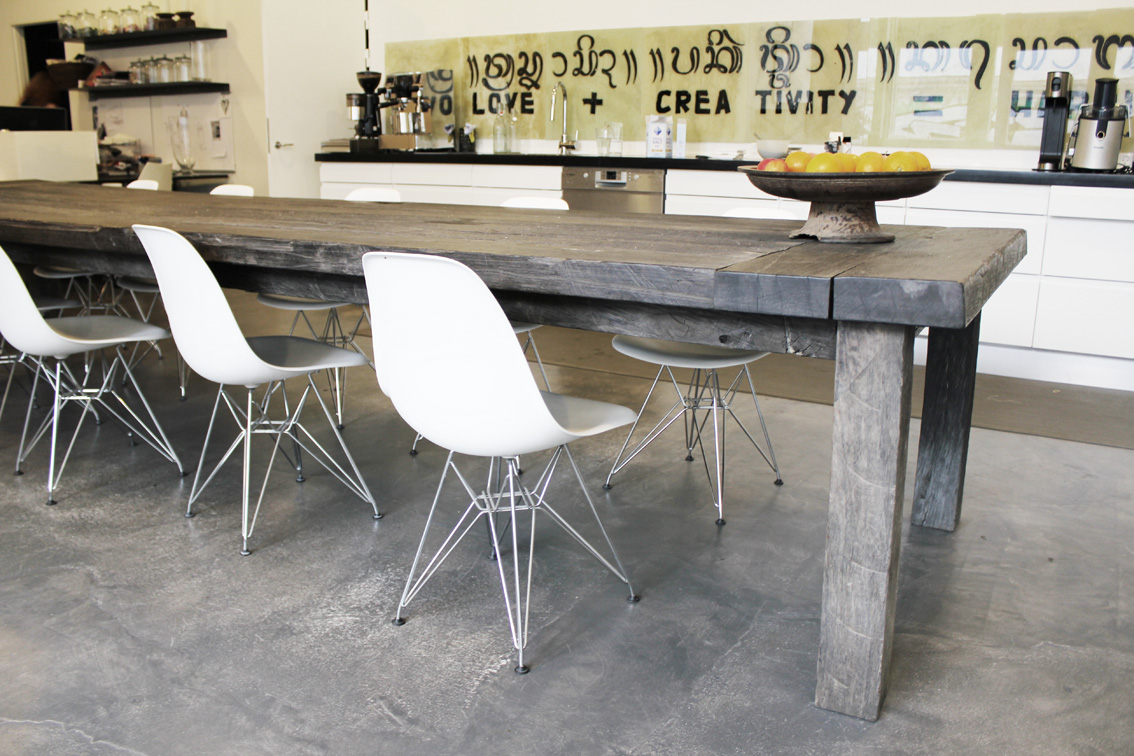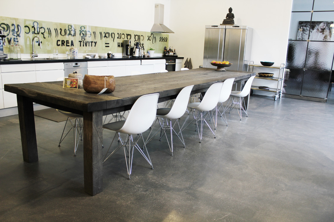 Kolla in det snygga bordet. Vilken härlig kontrast till dom moderna Eames stolarna. Detta bord kommer från Rabens Atelier i Köpenhamn. Bilden tog jag inne i deras privata del som är kontor/matrum.