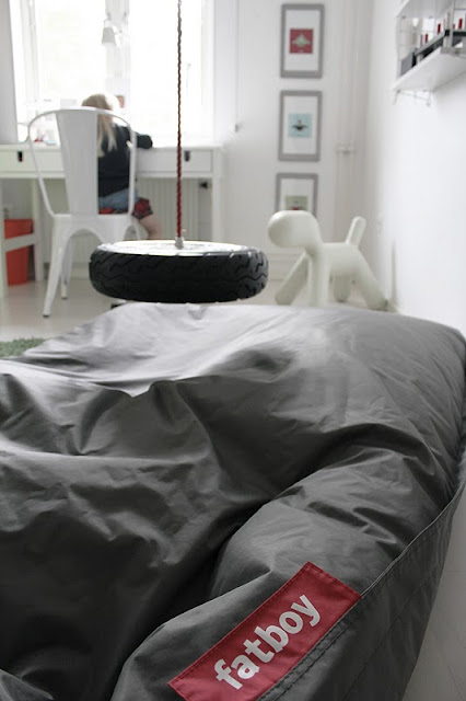 Som ni ser här så har Tolix stolen flyttat in till flickrummet igen från Sockrets kontor. Dockan ville inte ha Panton stolarna. Hon kallar dom för köksstolar. Och det hör man ju på namnet. Köksstolar skall ju vara i köket, sa liten Docka i går kväll:)! Så det var ju tur att jag inte hade köpt några Panton stolar från Vitra denna gång, utan bara flyttade runt stolarna för att känna efter.