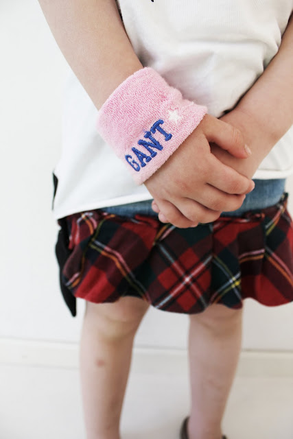 Min lilla Docka, som lånat stora systers svettband runt armen.
