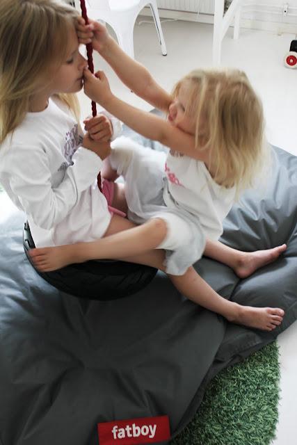Nu kan dom slänga sig från gungan, utan att skada sig. Dom älskar Fatboys. Varje gång vi är och besöker Bommulsfabriken i Nääs. Så ligger dom och sår på Tv i deras härliga Fatboys som ligger