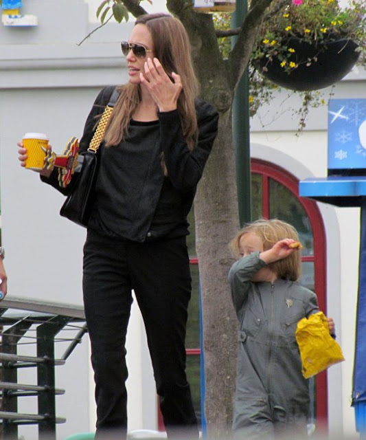 Angie såg chic ut i helsvart tillsammans med sin yngsta son som var klädd i ett stycke kläder medan du håller en leksak svärd. Den lyckliga gruppen haft några attraktioner och plockade upp några souvenirer längs vägen.